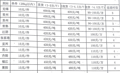 成都到江陰物流專線價格: